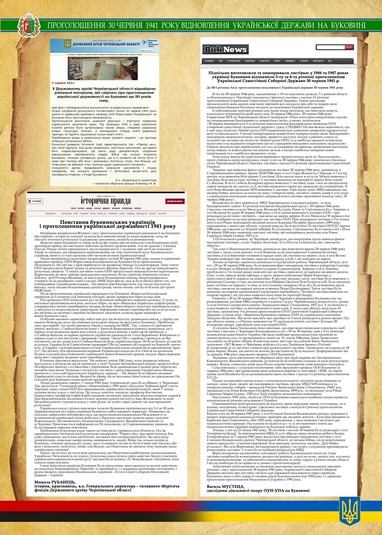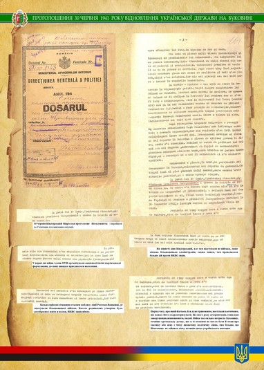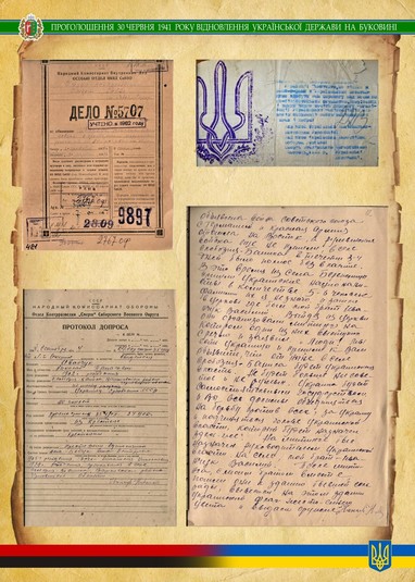 «Сенсаційна історична знахідка. Унікальні документи, які знайшли у Державному архіві Чернівецької області, свідчать, що 30 червня 1941 року один із керівників крайового проводу ОУН Мирослав Кіндзірський на Буковині проголосив Українську державу. Буковина 80 років тому боролася за власну державність, а синьо-жовті прапори майоріли у багатьох селах області», –йдеться у повідомленні.