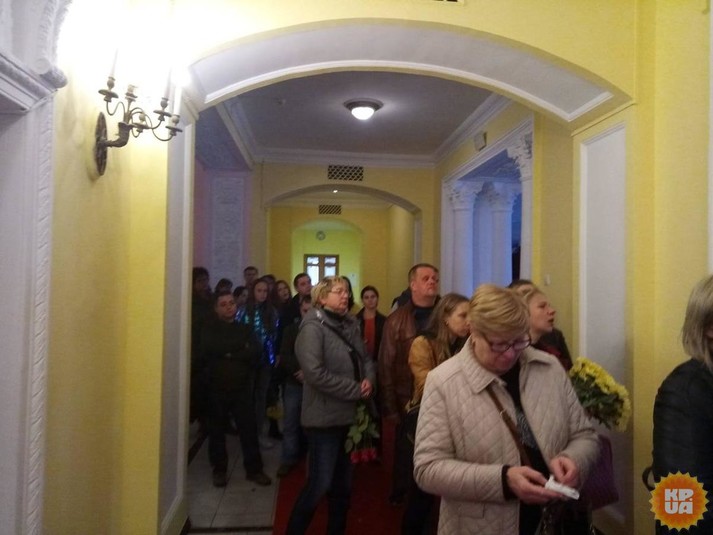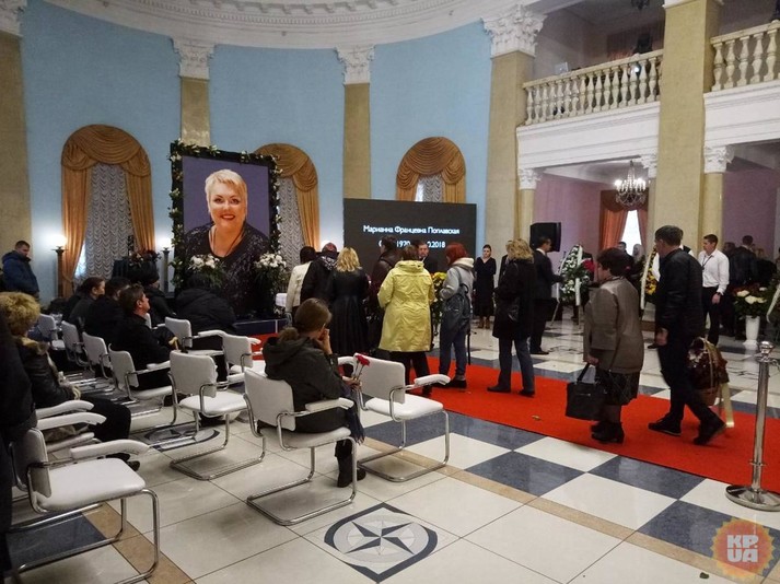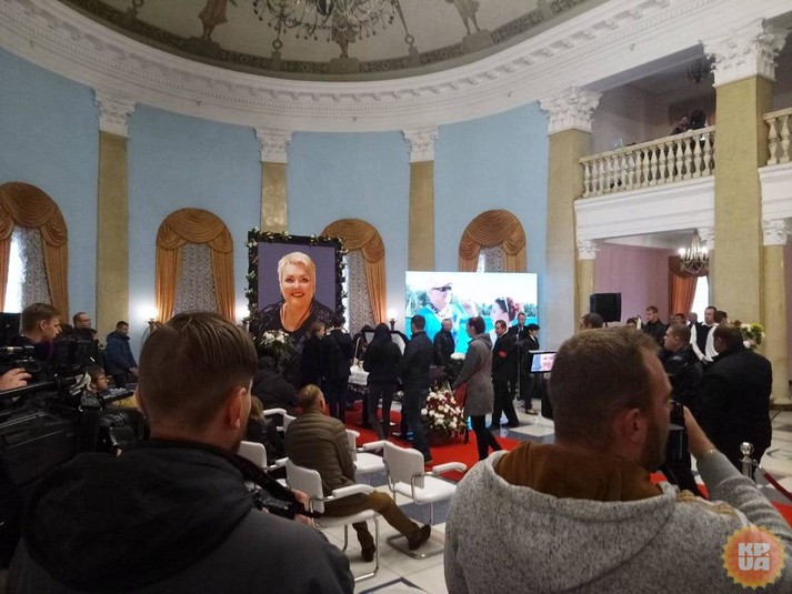 В українській столиці прощаються з актрисою «Дизель Шоу» Мариною Поплавською, яка загинула в ДТП по дорозі зі Львова. Церемонія проходить в приміщенні «Жовтневого палацу».