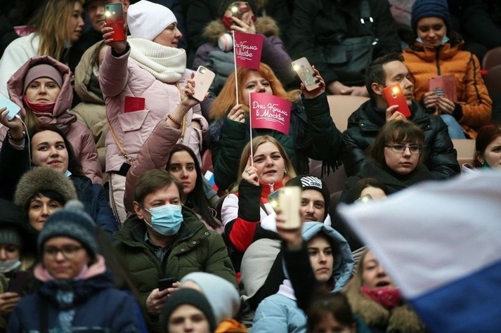 Президент країни-агресорки РФ Володимир Путін виступив на концерті у московських «Лужниках» з нагоди сьомих роковин окупації українського Криму. Самі окупанти називають захоплення півострова «возз’єднанням з Росією».