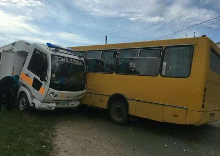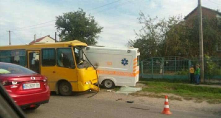 У Львівській області п'яний водій маршрутки врізався на повному ходу в машину швидкої допомоги.