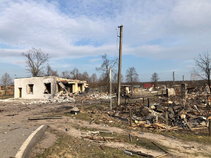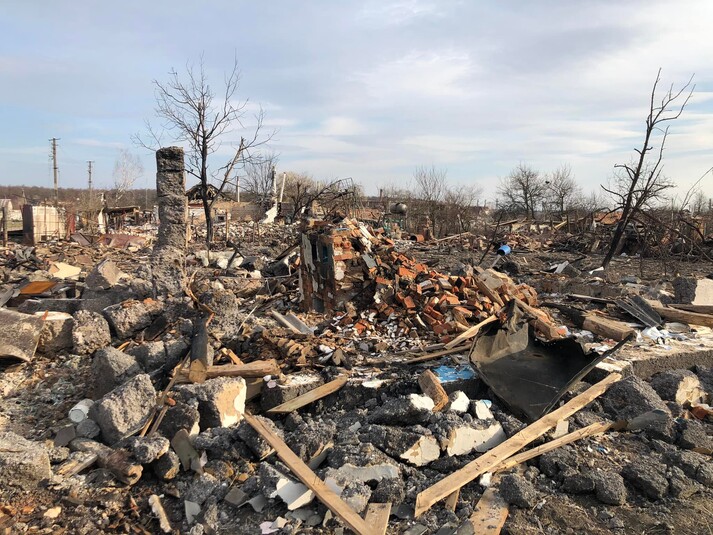 На світлинах, зроблених на залишках села, не видно жодного вцілілого будинку. Як пояснив журналіст, окупанти використовували тут тактику килимових бомбардувань.