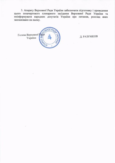 Також Разумков доручив провести засідання першому заступнику голови парламенту Руслану Стефанчуку.