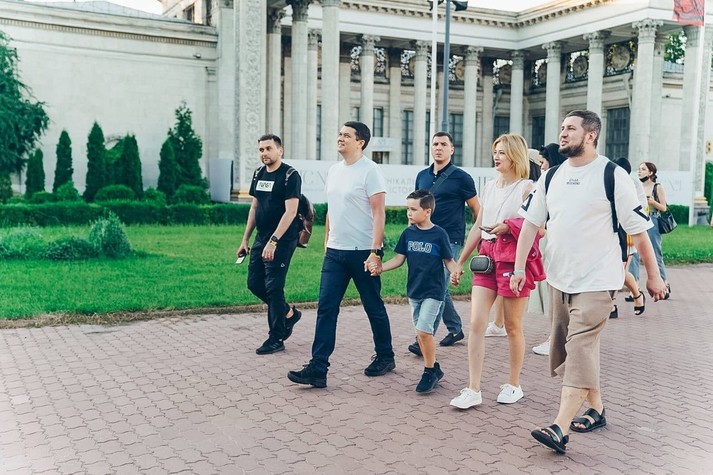 У соцмережах показали кілька світлин, де Разумков разом з дружиною Юлією та старшим сином Олександром прогулюється локаціями ВДНГ.