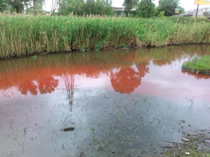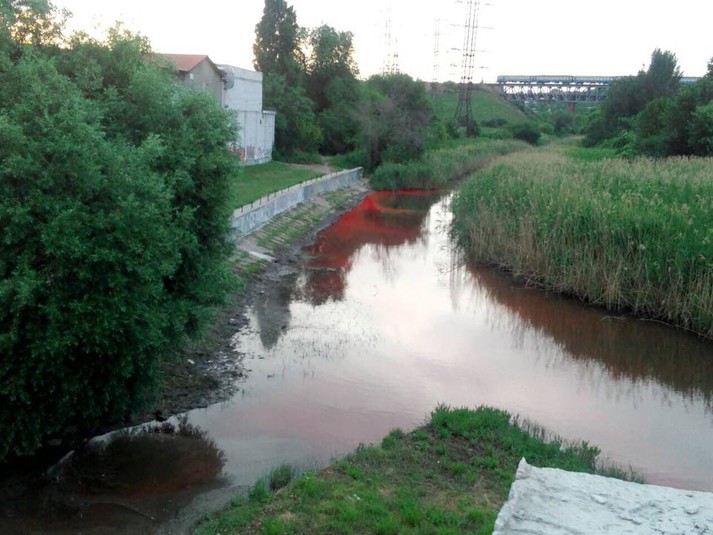 Річка Мокра Московка у Запоріжжі стала яскраво-червоною (фото)