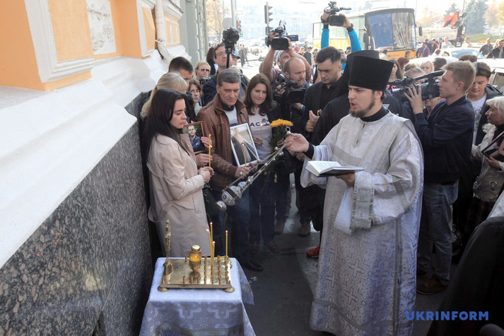 Харків'яни несуть квіти і свічки до місця трагедії. Серед півсотні присутніх на панахиді - потерпілі і родичі загиблих.