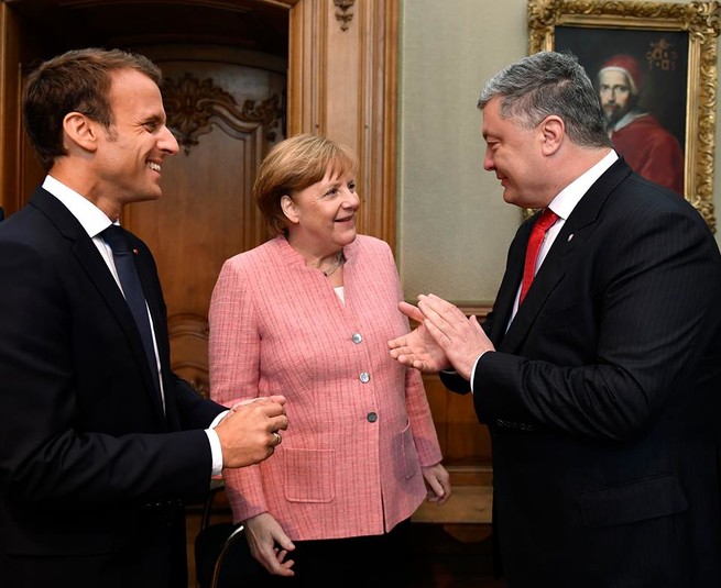 Серед фотографій є знімки Порошенка із зустрічей зі світовими лідерами: зокрема, Ангелою Меркель, Еммануелем Макроном, Дональдом Трампом та його дружиною