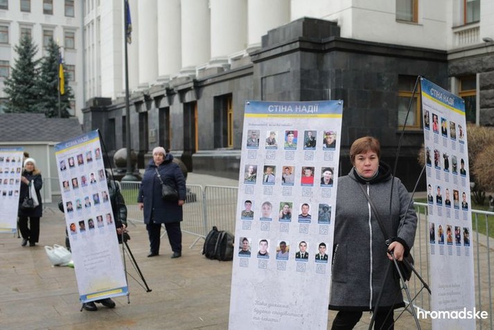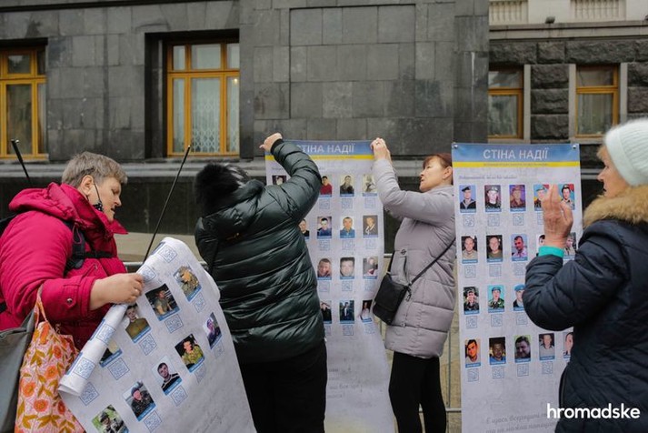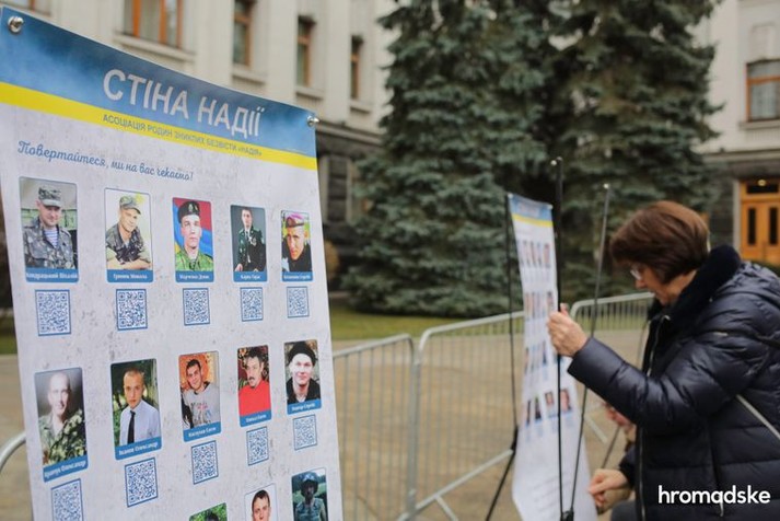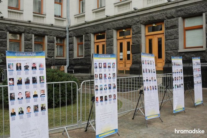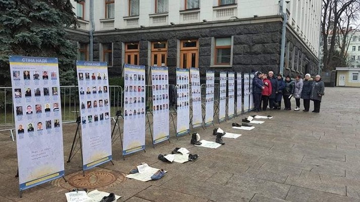 Рідні та близькі зниклих безвісти на Донбасі влаштували 3 грудня біля Офісу президента у Києві акцію «Стіна надії» та інсталяцію «Сліди на землі», інформує hromadske