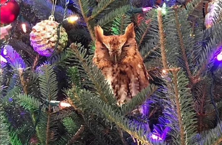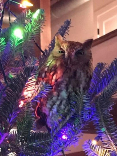 Сім’я Ньюманів прикрасила ялинку фігурками сов, а самі гілки дерева були дуже пухнасті, тому справжню сову вдалося виявити не одразу. Коли Ньюмани зрозуміли, що на їхній ялинці оселилася сова, вони відкрили навстіж вікна та двері, але пернатий не збирався відлітати.