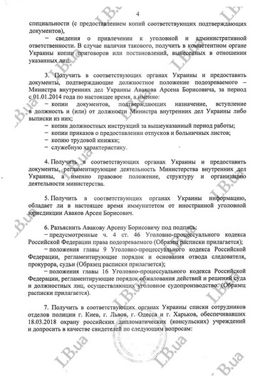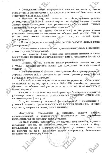 РФ також запросила інформацію про те, чи володіє Аваков імунітетом від іноземної кримінальної юрисдикції, і попросила списки співробітників поліції, які забезпечували охорону російських дипустанов під час виборів президента Росії.