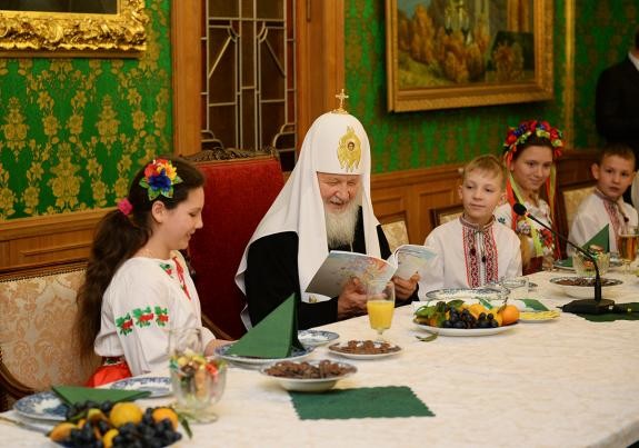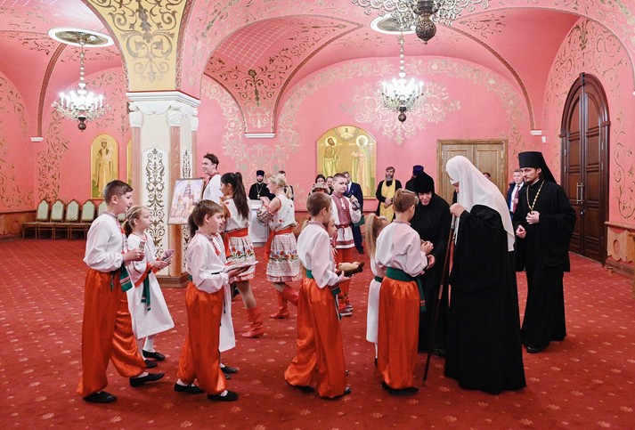 «Під час зустрічі зі Святішим патріархом Кирилом діти виконали українські пісні і танці і вручили його Святості подарунки, виготовлені ними власноруч. Предстоятель Російської Православної Церкви благословив юних паломників і вручив їм пам'ятні подарунки», - додали у РПЦ.