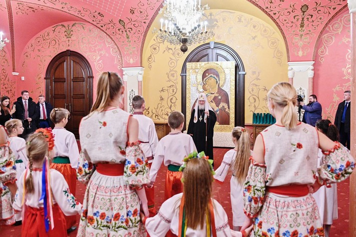 Організатори влаштували патріарху РПЦ Кирилу костюмоване шоу, використовуючи юних українців