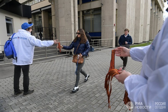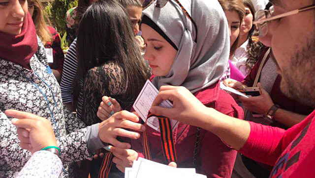 Біля медичного факультету студенти кафедри російської мови менш ніж за півгодини роздали понад 1,5 тисячі стрічок разом з пам'ятками на арабській мові, де коротко пояснюється важливість символу в історії Росії і її народу.