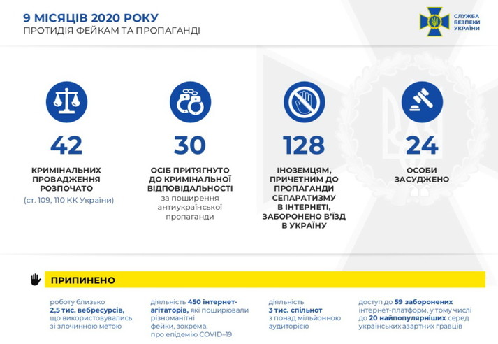 В СБУ зауважили, що подібні ботоферми значно активізувалися напередодні місцевих виборів, тож спецслужба активно протидіє інформаційним фейкам, антидержавній пропаганді та сепаратизму в інтернеті. Загалом у 2020 році за матеріалами СБУ розпочато 42 справи за злочини проти основ національної безпеки, 24 осіб засуджено.