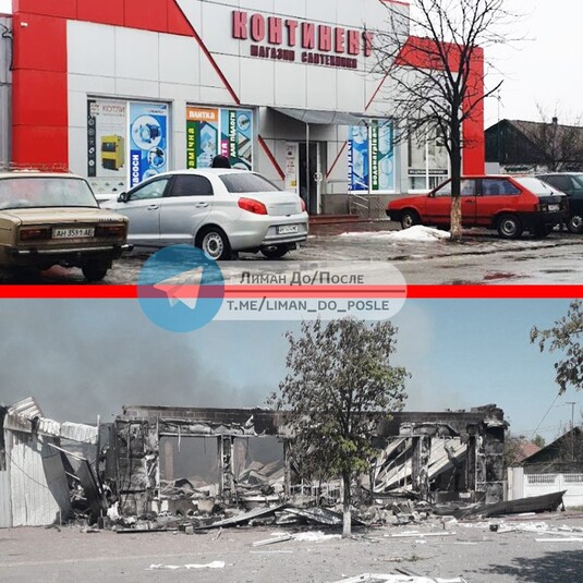 Жителі Лимана викладають у соціальних мережах фото будівель, які були зруйновані під час захоплення міста російськими військовими, та порівнюють їх з тим, який вигляд мали ці будівлі до приходу «російських визволителів».