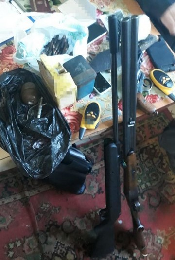 Під час проведення слідчих дій правоохоронці виявили у помешканнях фігурантів справи реактивну протитанкову гранату РПГ-22, два автомати Калашникова, три гранати Ф-1, три револьвери, пістолет Макарова, сім бронежилетів, велику кількість набоїв та незареєстровану автоматичну і мисливську зброю.