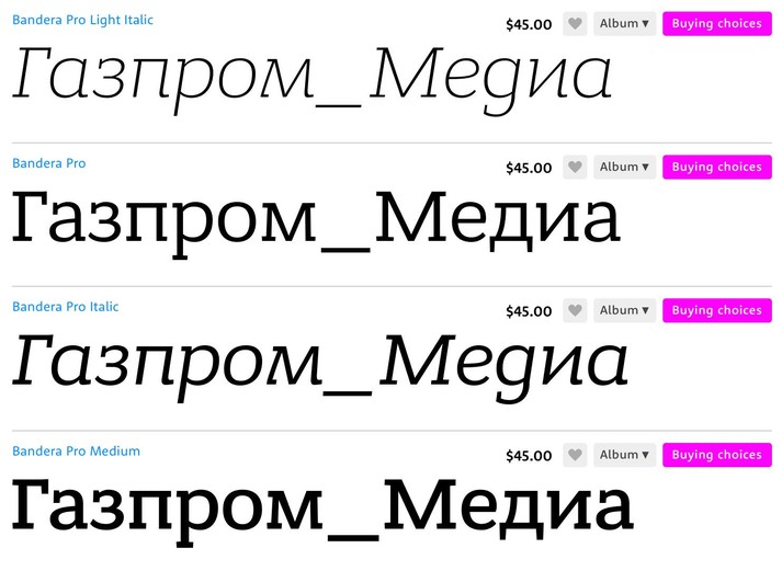 У вересні медіахолдинг Росії «Газпром-медіа» представив оновлений логотип і фірмовий стиль. У новому брендінгу використали український шрифт Андрія Шевченка Bandera Pro, пише видання Telegraf.design.