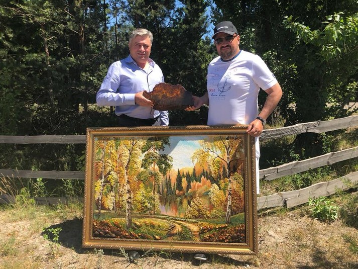Також, на одній із світлин депутати тримають картину, яка теж викладена шматочками бурштину. Ціна такої картини на замовлення може сягати 1000$.