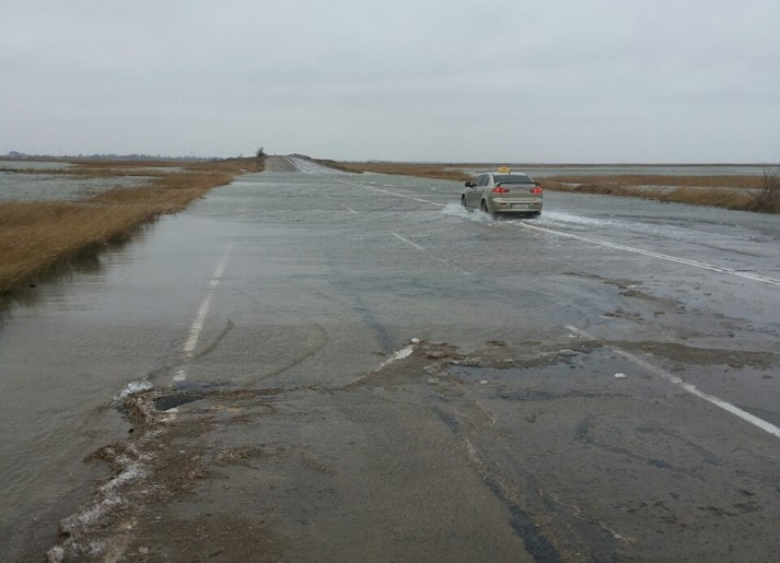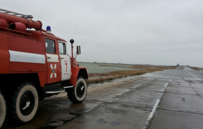 Через сильні пориви вітру 30 листопада в районі Арабатської Стрілки розлилося Азовське море і на проїзній частині автодороги Генічеськ – Стрілкове утворився перелив протяжністю до 1 км.