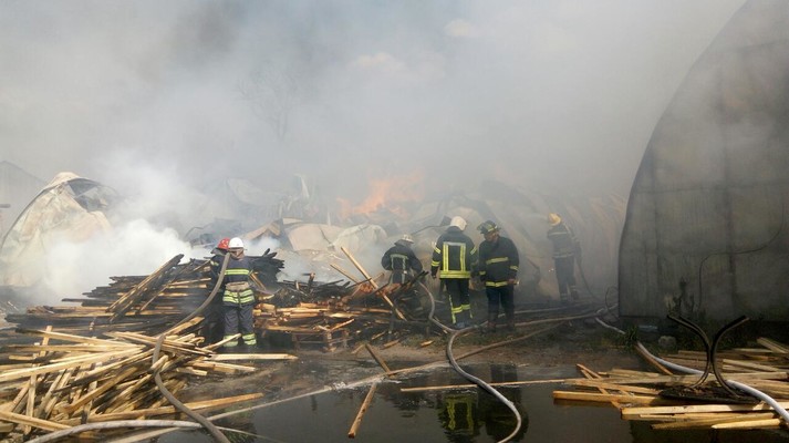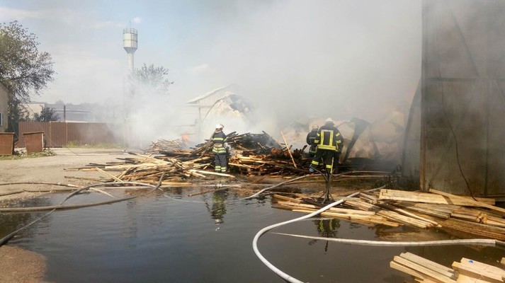 Внаслідок пожежі вогнем знищено та пошкоджено конструктивні елементи будівель та продукцію деревини, що знаходилася всередині. До гасіння пожежі залучалося 12 од. тех. та 46 чол.
