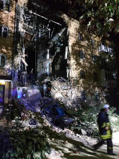 Як повідомлялося сьогодні вранці, двоє постраждалих, з них одна дитина, внаслідок вибуху у житловому будинку у Дрогобичі Львівської області перебувають у тяжкому стані. Під завалами в будинку, де після вибуху стався обвал під'їзду, можуть перебувати ще люди.