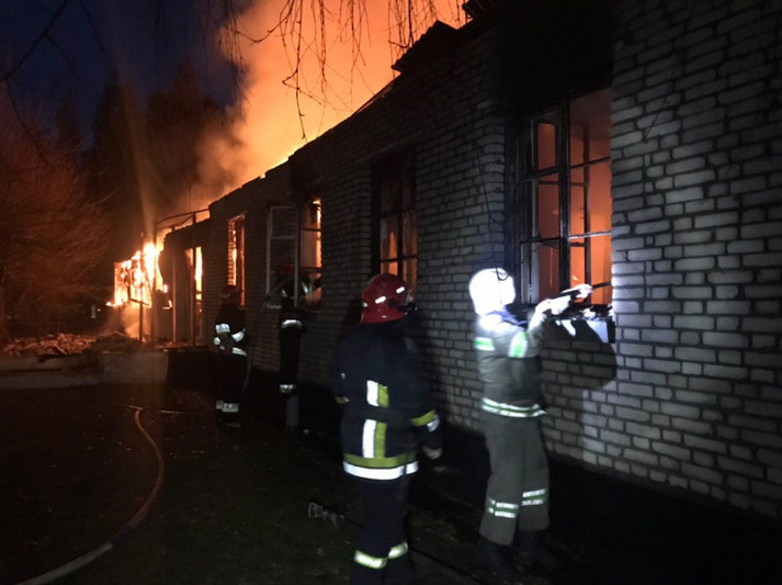 Зазначається, що повідомлення про пожежу надійшло о 05:03. Пожежа виникла в адміністративній будівлі розміром 40х12 м. До місця події виїхали із двох частин у найближчих містах та з двох постів у прилеглих селах.