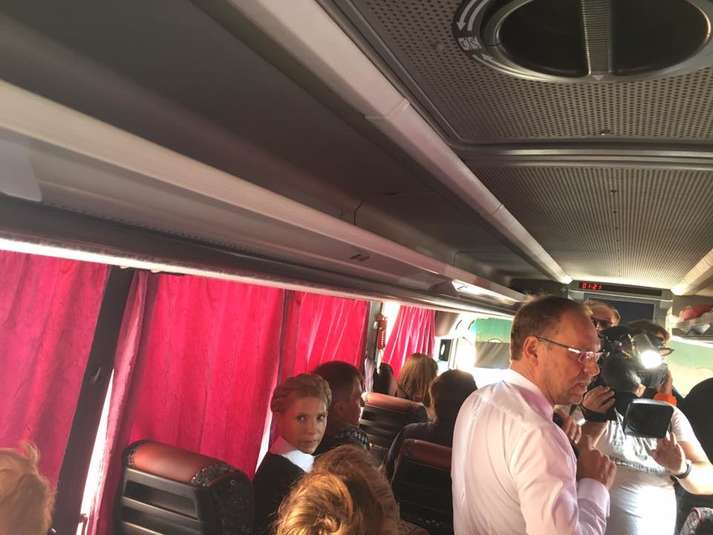 В автобусі з Саакашвілі також група депутатів від «Батьківщини» на чолі з Юлією Тимошенко, які раніше прибули до Польщі для зустрічі з ним.