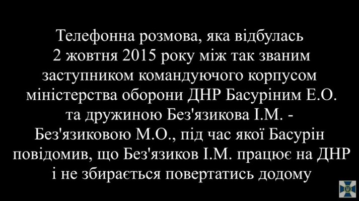 «Служба безпеки України оприлюднює телефонні розмови, що підтверджують протиправну діяльність колишнього начальника розвідки - начальника розвідувального відділу штабу управління 8 Армійського корпусу сухопутних військ ЗСУ полковника Без'язикова Івана Миколайовича, спрямовану на шкоду суверенітетові, територіальній цілісності, недоторконасті, обороноздатності та державній безпеці України», - йдеться в описі до відео.