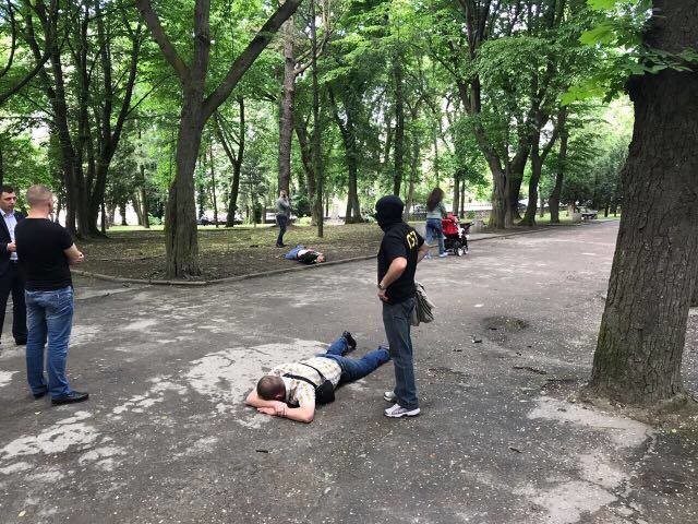 Оперативники спецслужби затримали зловмисників, згідно зі ст. 208 Кримінального процесуального кодексу України, у центральному парку міста під час отримання грошей.