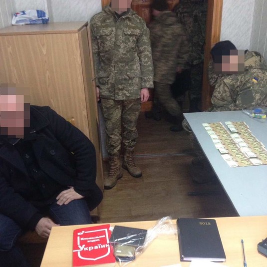 Правоохоронці затримали керівника філії згідно зі ст. 208 Кримінального процесуального кодексу України на території військового містечка під час отримання 1,8 тисячі гривень щомісячної «данини» від орендаря невеличкої кав’ярні.