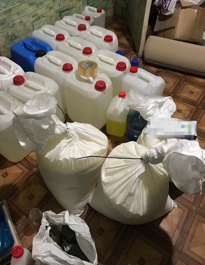 Під час санкціонованих слідчих дій у помешканнях і підсобних приміщеннях фігурантів провадження виявлено обладнання для виготовлення прекурсорів та психотропних речовин, майже двісті кілограмів фенілнітропропену, понад тонну хімічних реактивів для його синтезу.