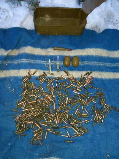 «Зі схронів, що були облаштовані у Донецькій (Широкине) та Луганській (Старобільськ) областях оперативники спецслужби вилучили сім реактивних протитанкових гранат РПГ-26 та РПГ-22, дві протипіхотні міни ОЗМ-72, шість гранат, підствольний гранатомет із трьома пострілами та понад дві тисячі набоїв різного калібру», - йдеться у повідомленні.