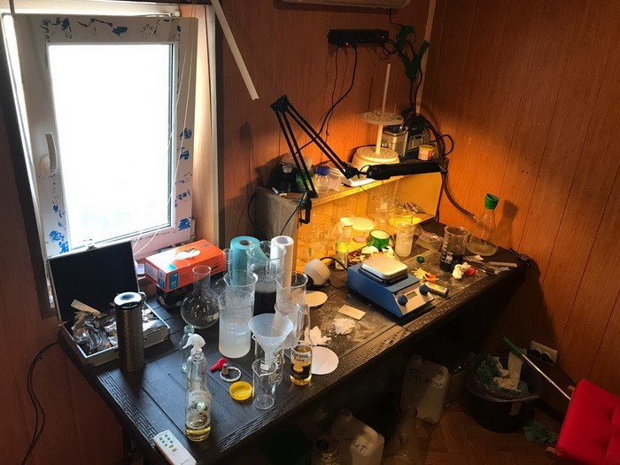 За інформацією спецслужби за добу він «виготовляв» майже сто грамів наркотику, який збував дилерам. Під час обшуків за місцем проживання наркоділка та в орендованому гаражі, оперативники спецслужби виявили чотириста грамів готового наркотику, шість літрів прекурсорів для його виготовлення та лабораторне обладнання для виготовлення психотропу.