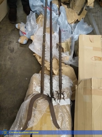 Під час огляду вантажу правоохоронці виявили, що частина речей не відповідає заявленим у митній декларації. Експерти підтвердили, що в контейнерах знаходяться антикварні предмети інтер’єру у східному стилі. Це – старовинна холодна зброя, предмети побуту, меблі.