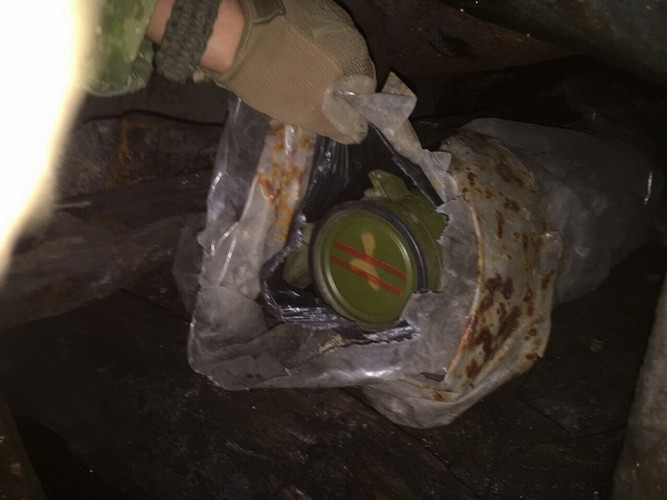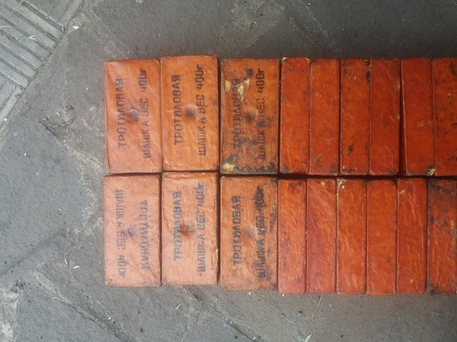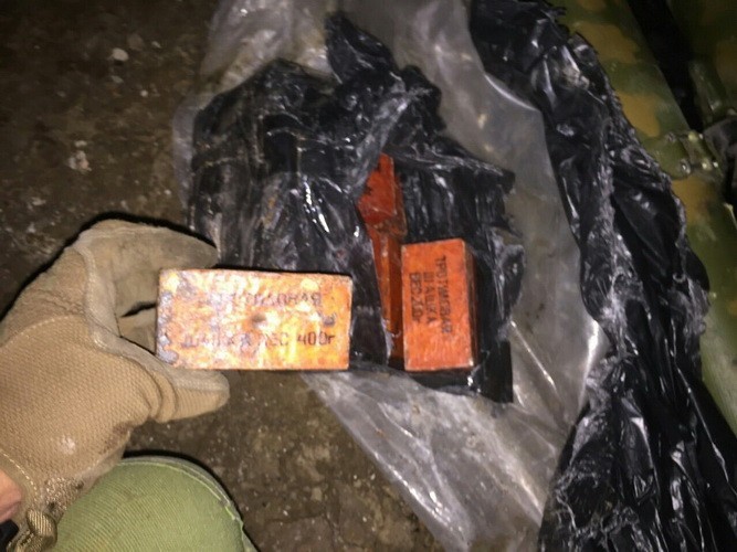 Також зі схрону, підходи до якого були заміновані розтяжкою з трьома гранатами Ф-1, правоохоронці вилучили понад п’ять кілограмів тротилу у шашках.