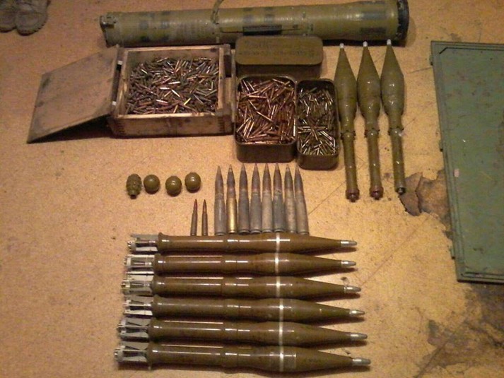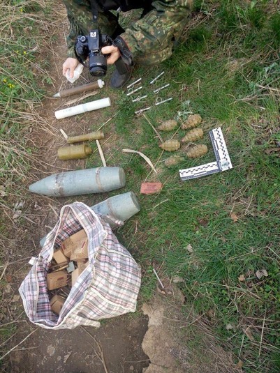 В одному із закинутих дачних будинків поблизу н.п. Олексієво-Дружківка Донецької області оперативники спецслужби виявили схрон, у якому знаходилось два фугасних снаряда калібру 122 мм, шість гранат Ф-1 із запалами, тротилова шашка, постріл до гранатомета РПГ-7, кумулятивна граната РГК та більше 1800 набоїв різного калібру.