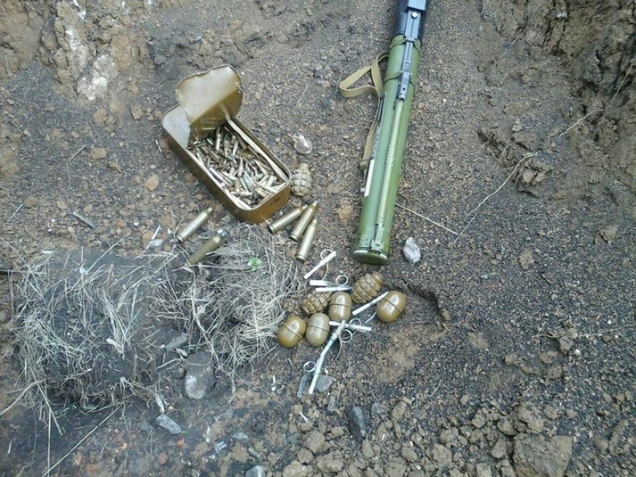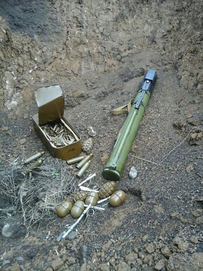 Поблизу н.п. Іванівка Донецької області співробітники СБУ виявили схрон, з якого вилучили реактивну протитанкову гранату РПГ-22, сім гранат РГД-5 і Ф-1 та набої різного калібру.