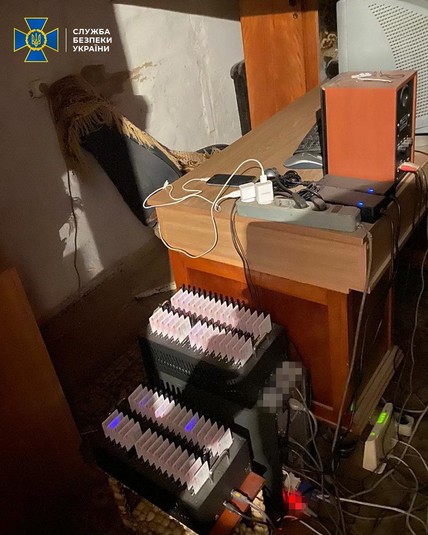 Під час обшуку за місцем роботи зловмисника вилучено 2 VoIP шлюзи, 7 USB-модемів, понад тисячу сім-карток та комп’ютер, з якого він здійснював керування ботофермою.
