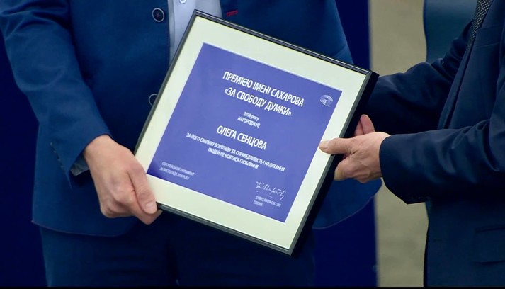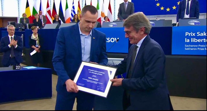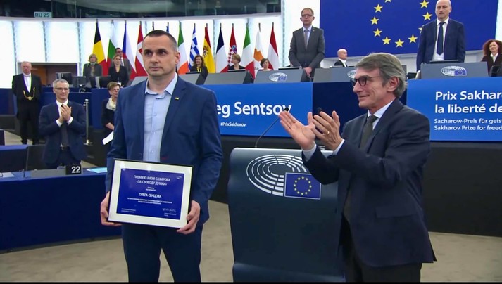 У вівторок, 26 листопада, Сенцову вручили премію ім.Сахарова особисто. Нагороду передав президент Європейського парламенту Давід Сассолі.