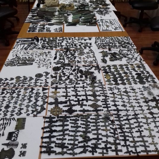 Всього митники нарахували 2113 предметів, серед яких найчисленнішими є підвіски, персні, різні інструменти та зброя, один більший камінь та кілька менших металевих фігур.