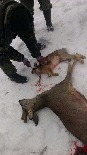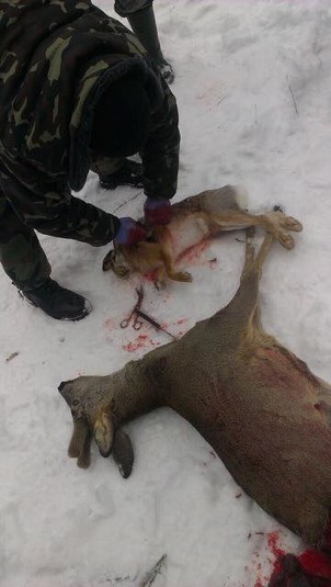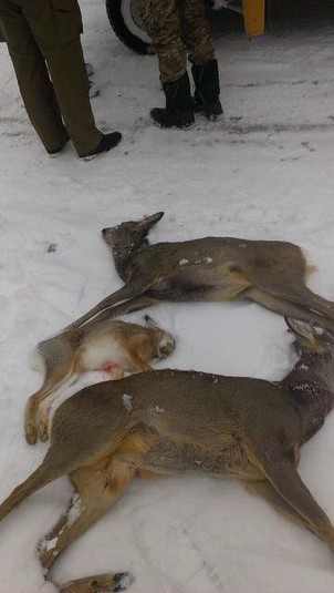 Інспекторами терміново було викликано співробітників поліції з метою затримання та встановлення осіб. У мисливців було виявлено дві незаконно добуті козулі та одного зайця-русака.