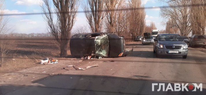 Серйозна масштабна автопригода із перекиданням сталася перед селищем Мирне у бік Борисполя за участю одразу трьох авто: два легкових і один вантажний.
