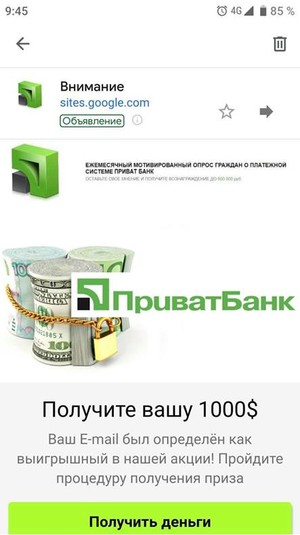 «Приватбанк» ніколи не організовував і не проводить в соцмережах або на інших інтернет-ресурсах вікторин або опитувань з виплатою грошових призів. Якщо ви отримали пропозицію про участь у «призовому» опитуванні, переходити за посиланнями на сайт шахраїв або зазначати свої особисті дані не можна. Ви не тільки гарантовано втратите гроші через «комісію» за виграш, але й дасте шахраям можливість використовувати дані карток для крадіжки коштів», – йдеться у повідомленні прес-служби.