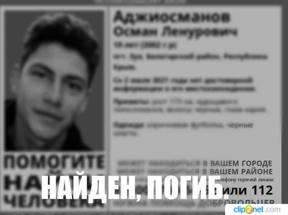 19-річний Осман Аджіосманов зник 2 липня у с. Зуя Білогірського (Карасубазарського) району. Він проживав з бабусею, яка виховувала його з 3-річного віку.