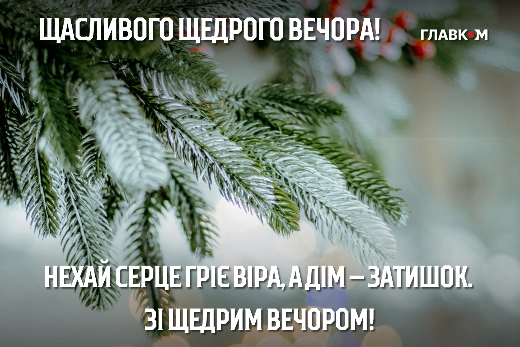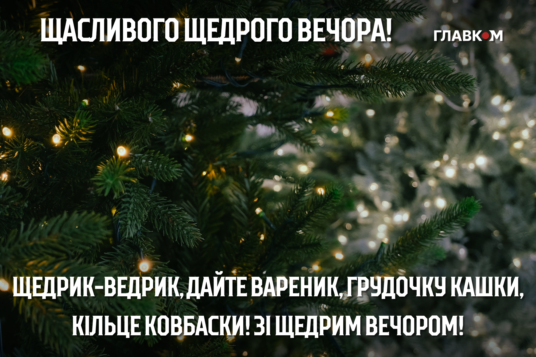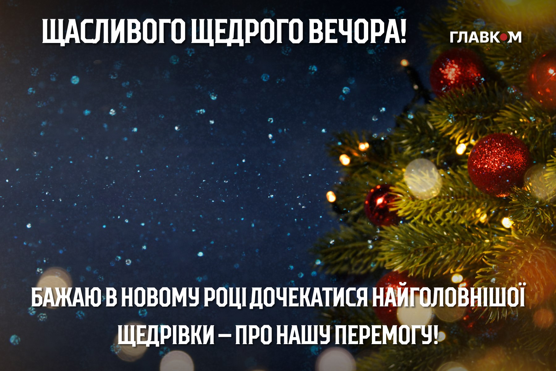 Щасливих свят! Щасливого Щедрого вечора! Божої благодаті та миру, успіхів та щастя вашій родині! У цей вечір заведено зичити щедрості, тож я бажаю щедрості вашому серцю, щедрості вашому дому та щедрості з боку долі! Нехай вас оминають негаразди, а добробут панує.