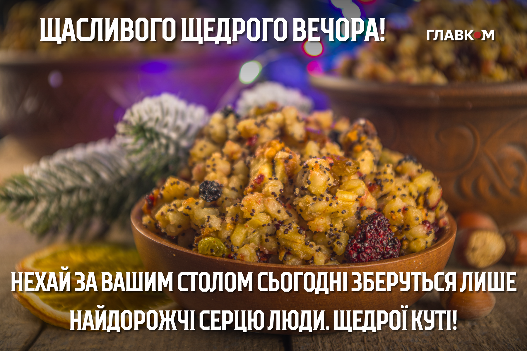 Веселих гостей і смачної куті! Нехай Щедрий вечір прийде в дім разом із щастям, добробутом і миром! Нехай в новому році на вашому столі завжди будуть смачні страви, а справи, які ви починаєте, завершуються успішно!