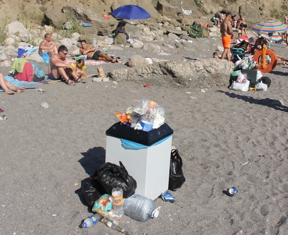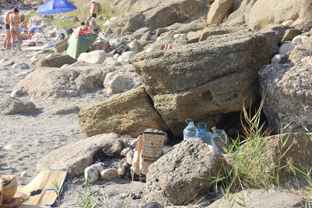 У той же час невелика чисельність відпочиваючих зовсім не виключає накопичення сміття. Мішки, кульки, пакети лежать по всьому пляжу.