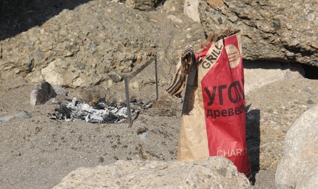 Кострища чорніють по всьому пляжу - громадяни відверто везуть покупні дрова і вугілля. Тут смажать шашлики, барбекю.