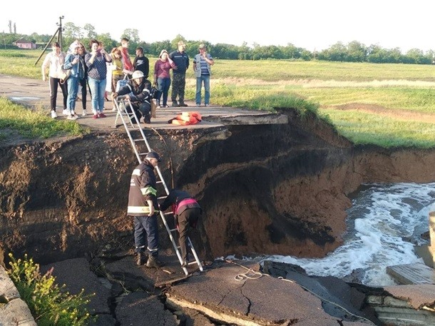 Була розмита дорога і зруйнований міст, який з'єднує дорогу між селищем Устинівка і селом Докучаєве
