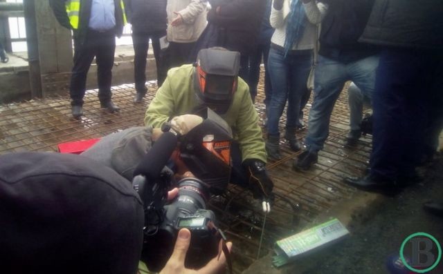 Опісля огляду мосту Володимир Гройсман власноруч долучився до його ремонту. Одягнувши рукавиці, Гройман зайнявся зварювальними роботами.