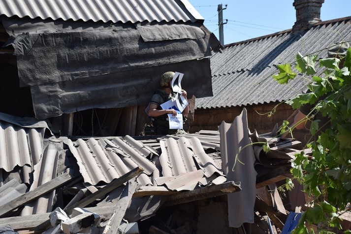 Мобільна група української сторони Спільного центру з контролю та координації питань припинення вогню та стабілізації лінії розмежування сторін здійснила фотофіксацію за фактом обстрілу населеного пункту Марʼїнка, що на Донеччині.